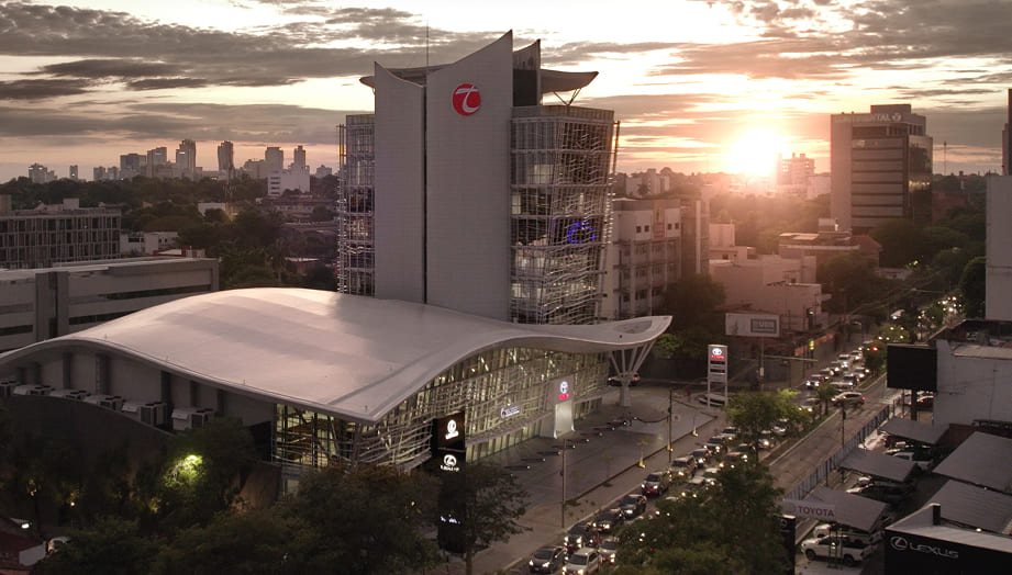 La nueva Casa Central de Toyotoshi se erigió sobre la Avda. Mariscal López, convirtiéndose en un ícono arquitectónico de la ciudad. Con más de 22.000 metros cuadrados, este edificio integró un diseño vanguardista inspirado en el movimiento del agua, respetando el medio ambiente y creando áreas colaborativas para impulsar la innovación y el bienestar de sus colaboradores.